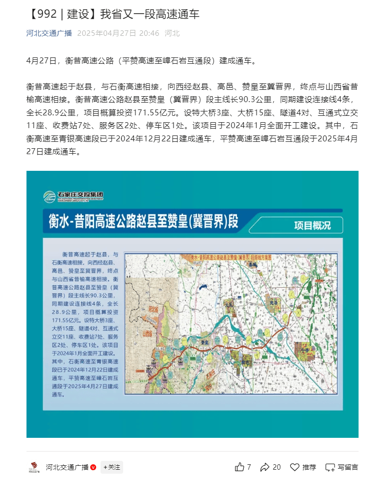 平贊高速最新消息顯示,至2025年,該高速公路的建設進展順利。這條路不僅是一條交通干線,更承載著無數溫馨的故事。它將連接各地的經濟文化交流,促進區(qū)域繁榮發(fā)展。期待未來平贊高速的完工,將為人們的出行帶來極大的便利。平贊高速至2025年建設順利,承載溫馨故事,促進區(qū)域繁榮發(fā)展,便利人們出行。