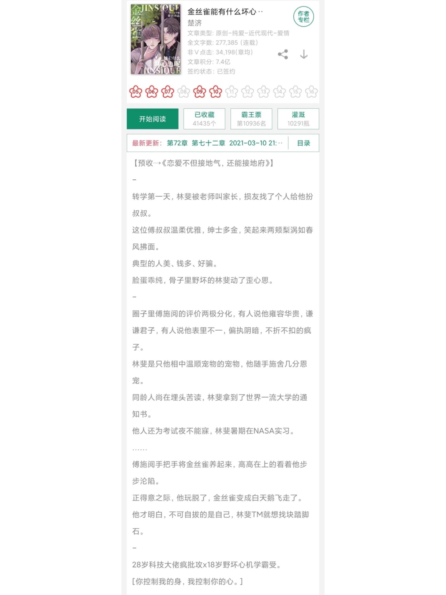 《金絲雀葉蘭心》是一部以現(xiàn)代都市為背景的長篇小說,故事以一位年輕女子的成長歷程為主線,通過對(duì)她人生經(jīng)歷的細(xì)膩描繪,展現(xiàn)了現(xiàn)代都市生活的種種面貌,最新章節(jié)中,故事發(fā)展到了一個(gè)新的階段,主人公面臨著更大的挑戰(zhàn)和機(jī)遇。